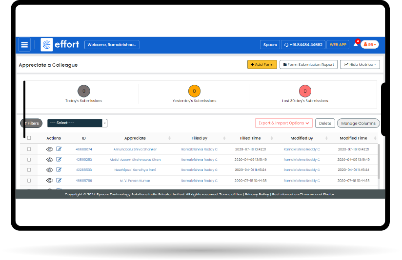 Effort is flexible, user friendly and easy to use enterprise solution. It helped us automate tasks for our field staff. Earlier we had no clue on the field staff whereabouts & performance on the field. After implementing Spoors solution it’s easy for us to monitor and optimizing the entire field operations. I would recommend Spoors to any company looking for a field activity optimization solution.
