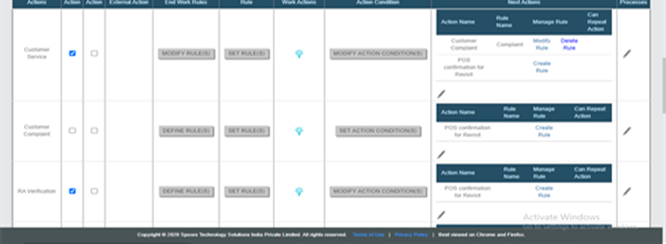 - Next Actions: Under this column, you can see the next action to be performed after the completion of the current work action. If you found Modify Rule under this column, then you need to verify the configured rules with the data in the form which is configured to that work action. The next actions will be performed according to the rules defined.