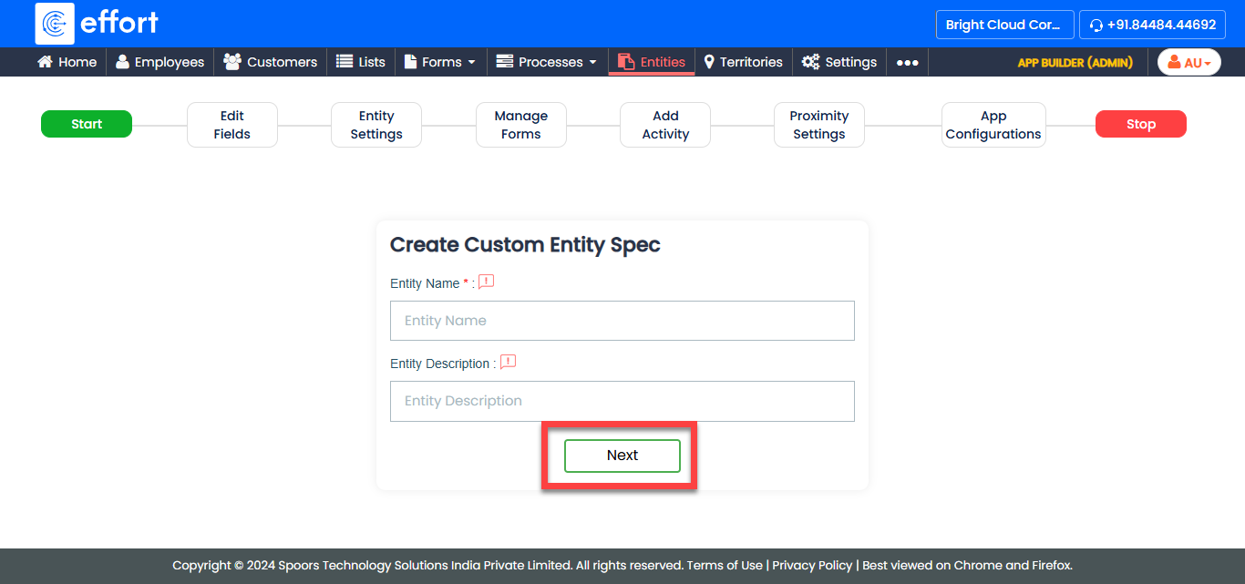 To create an entity, follow the steps below: