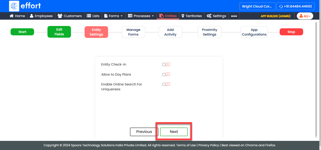 In the Entity Settings tab, select the following options
