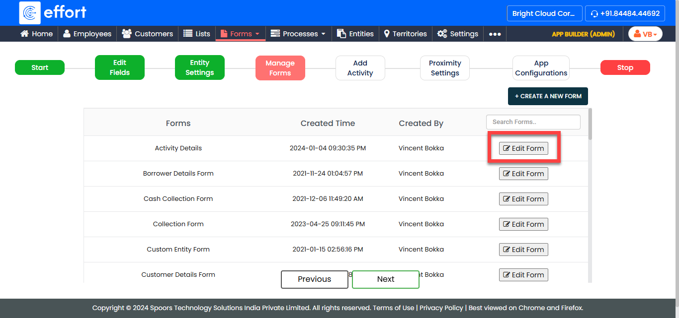 In the Manage Forms tab, you will find the forms created