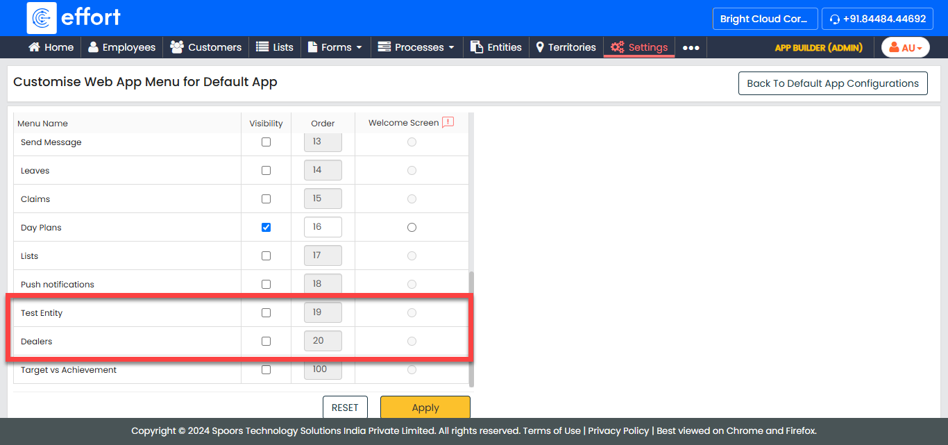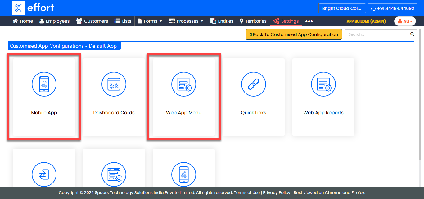 The Customised App Configurations feature allows you to control the accessibility of an entity in both mobile and web applications.