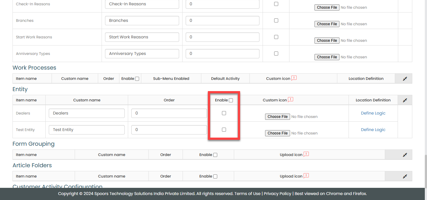 To enable/disable the entity visibility for both the web and mobile apps, follow the steps below: