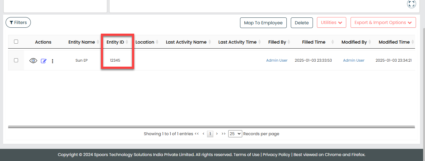 Note: To find an Entity ID, go to the Web App Entity section and copy the ID from the Entity ID column.