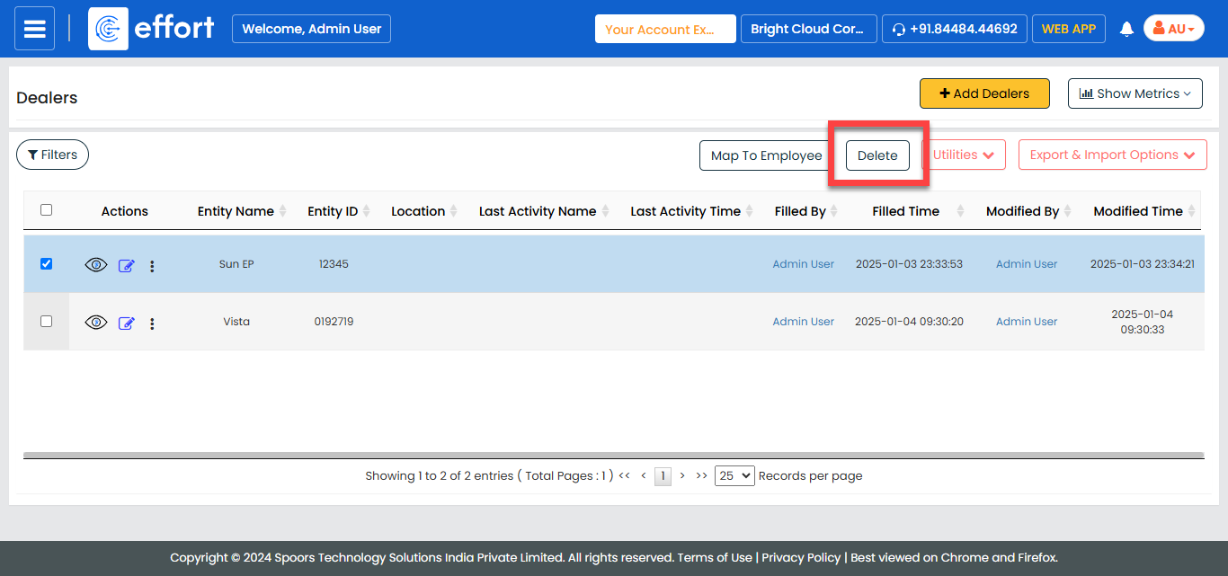 - In the confirmation pop-up, click OK to confirm the deletion.