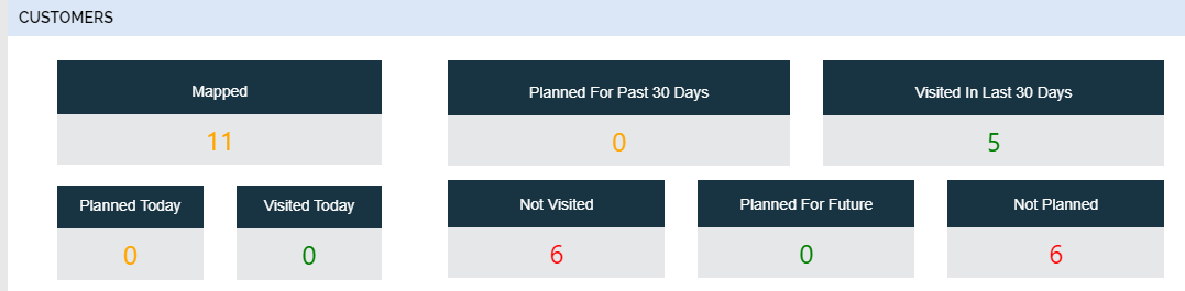 The Customers card shows the metrics regarding the customers and customer check-ins such