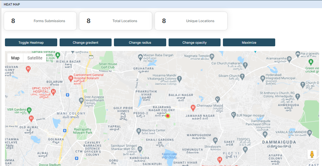 - Toggle Heatmap: It allows you to enable or disable the form submission locations on the map.