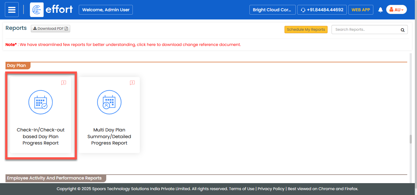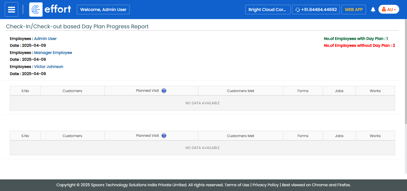 The Check-In/Check-Out based Day Plan Progress Report page appears.