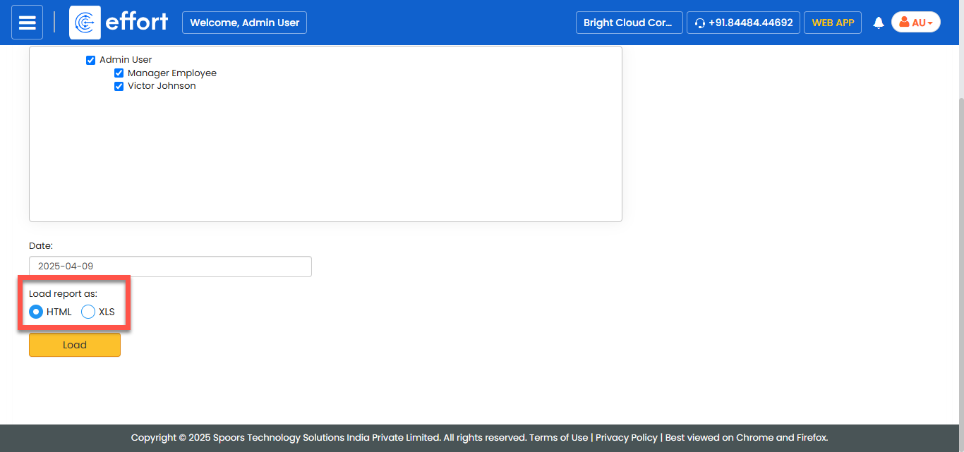 In Load report as, select the output report