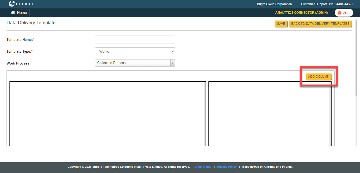 Click the Create Data Delivery Template button located