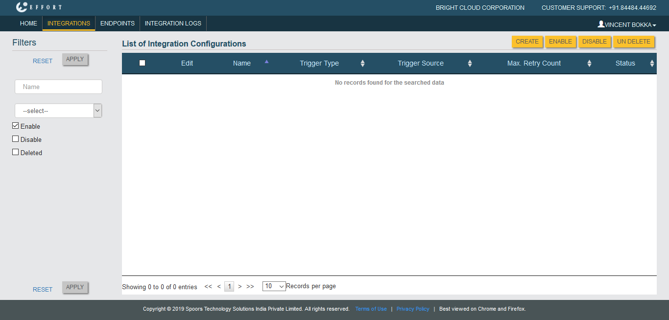 The List of Integration Configurations page appears.