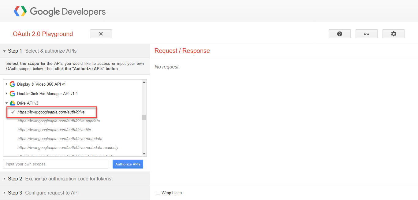 - Make sure you have already enabled the Google Drive API to create application. To enable, refer Enable Google Drive API.
