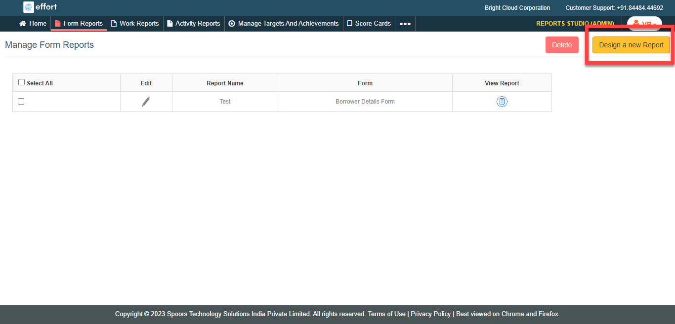 Click the Design A New Report button located on the top