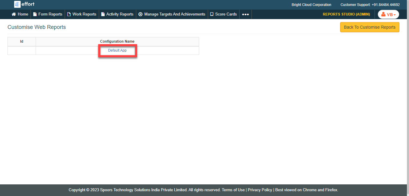 Click the Customise Web Reports card.