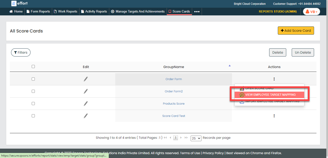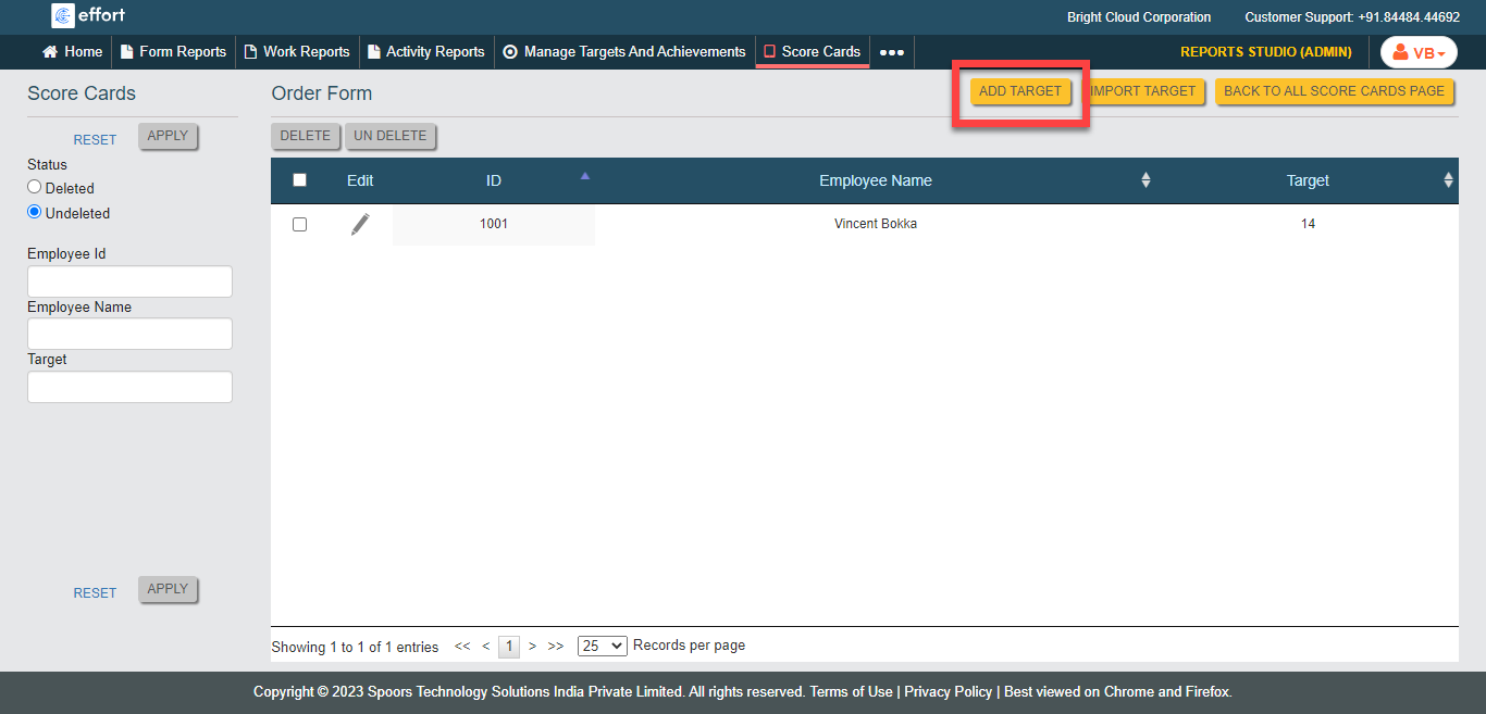 To create targets to score card, follow the steps below.