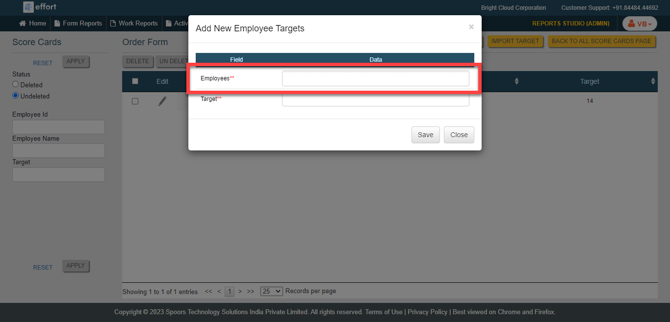 The Add New Employee Targets page appears.