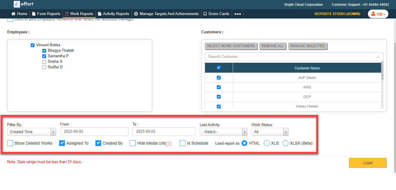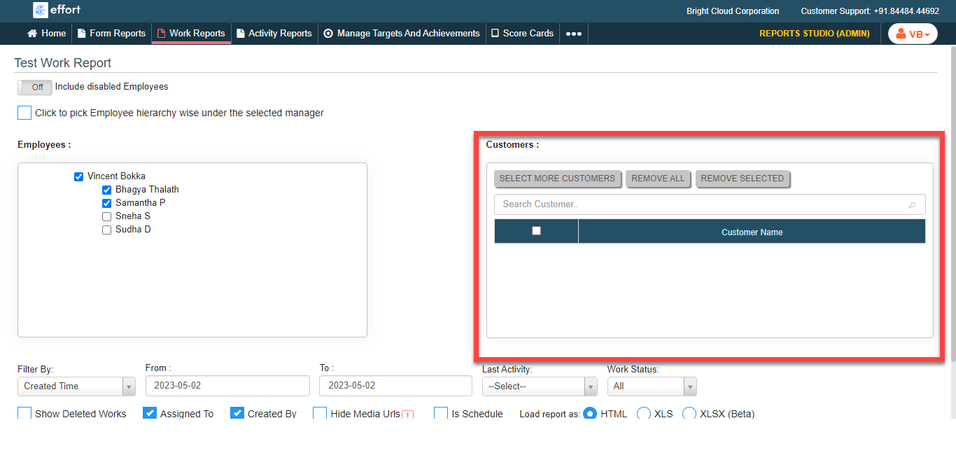 - Created By: Click checkbox to include the work created employee name in the output report.