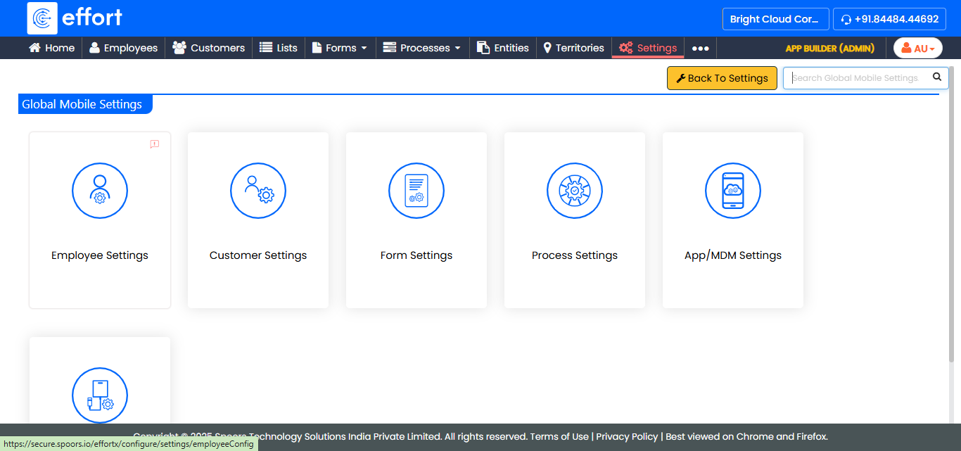 The Global Mobile Settings page appears.