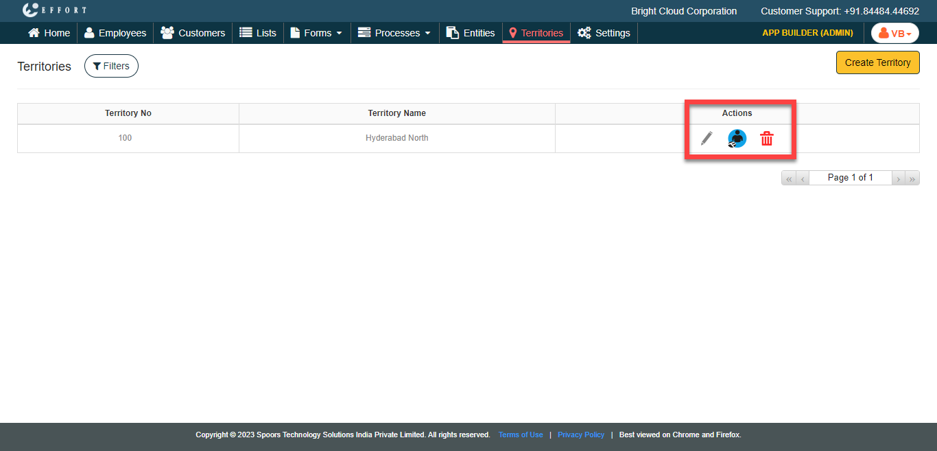 Refer the Create a Territory topic to know more about the configuration fields. - Click Save.