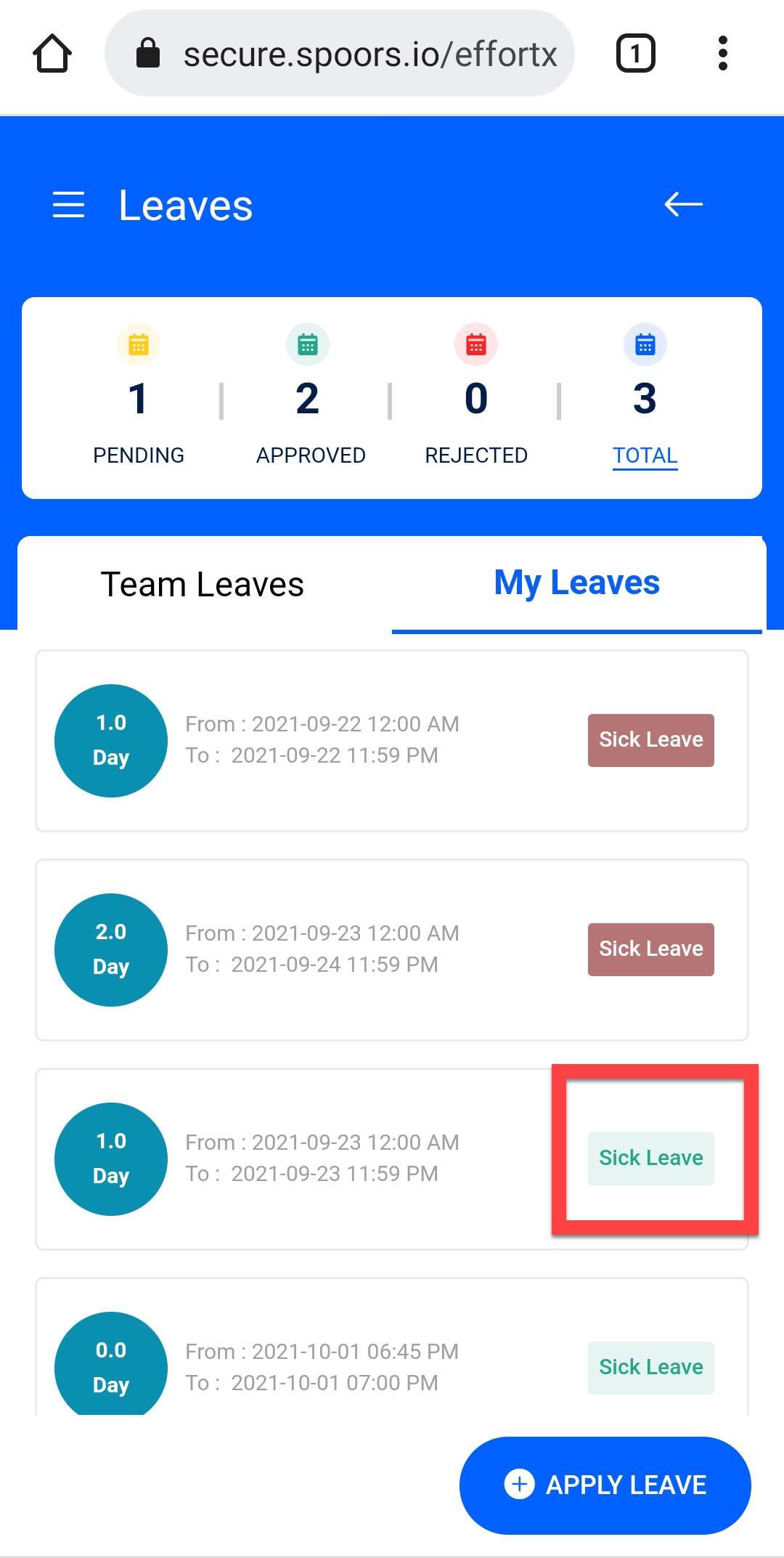 Tap LEAVES card on the home screen.