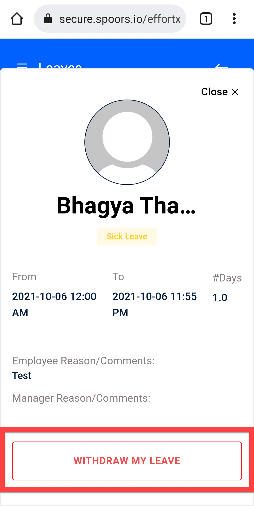 Tap WITHDRAW MY LEAVE button.