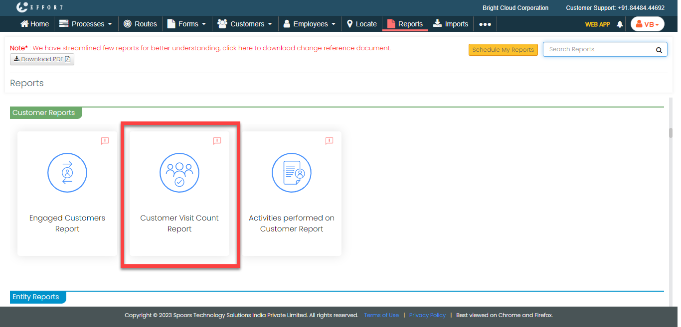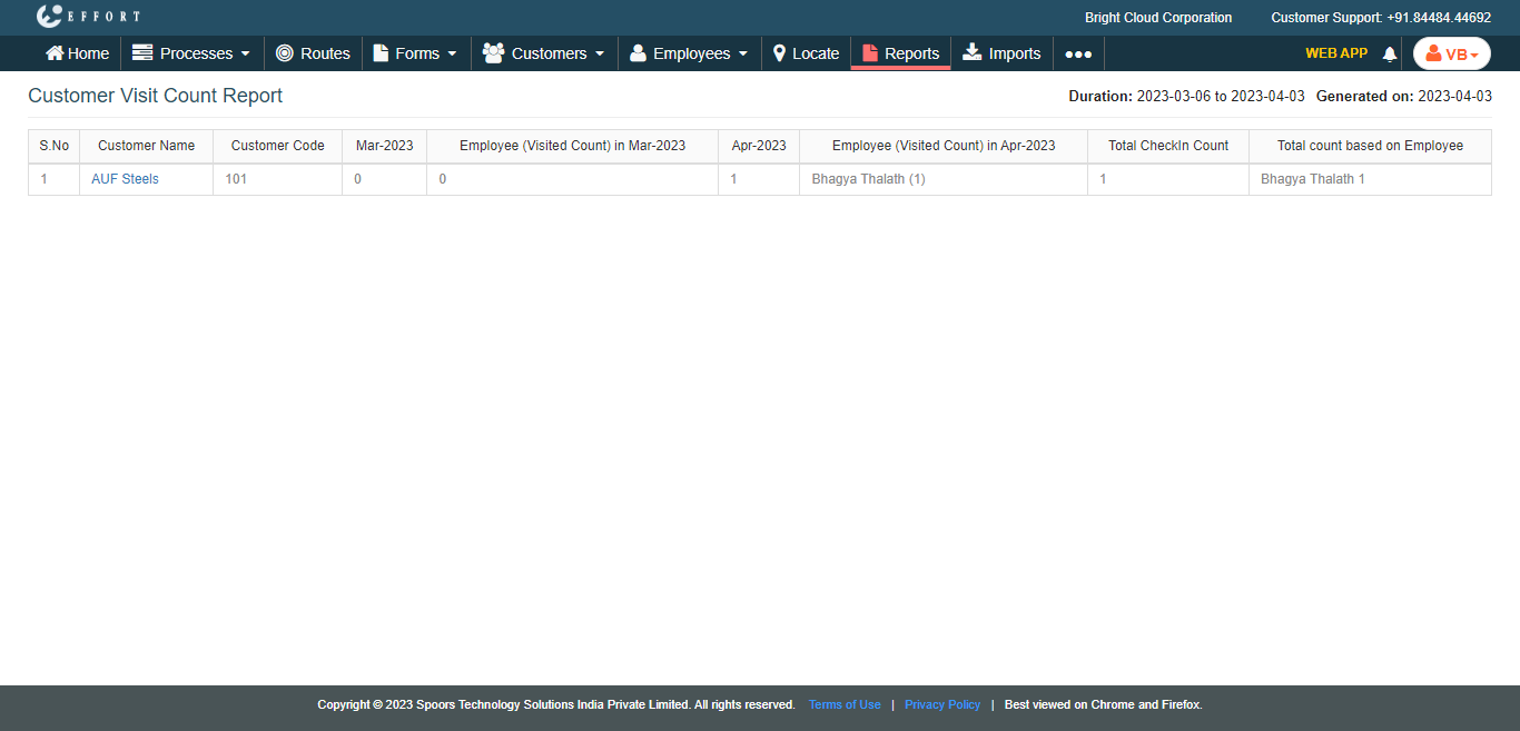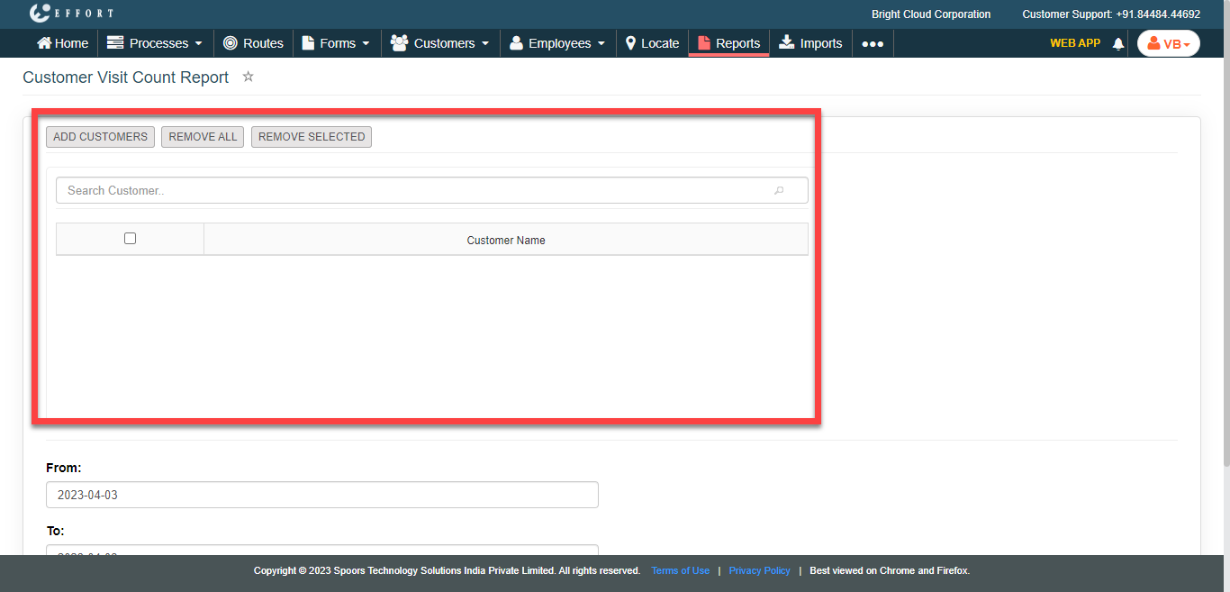 The Customer Visit Count Report page appears.