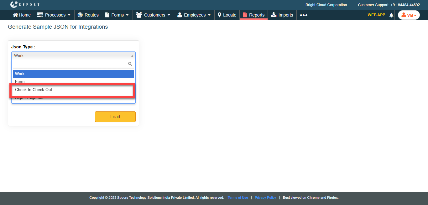 To generate a sample JSON for integration of customer check-in check-out, follow the steps below.