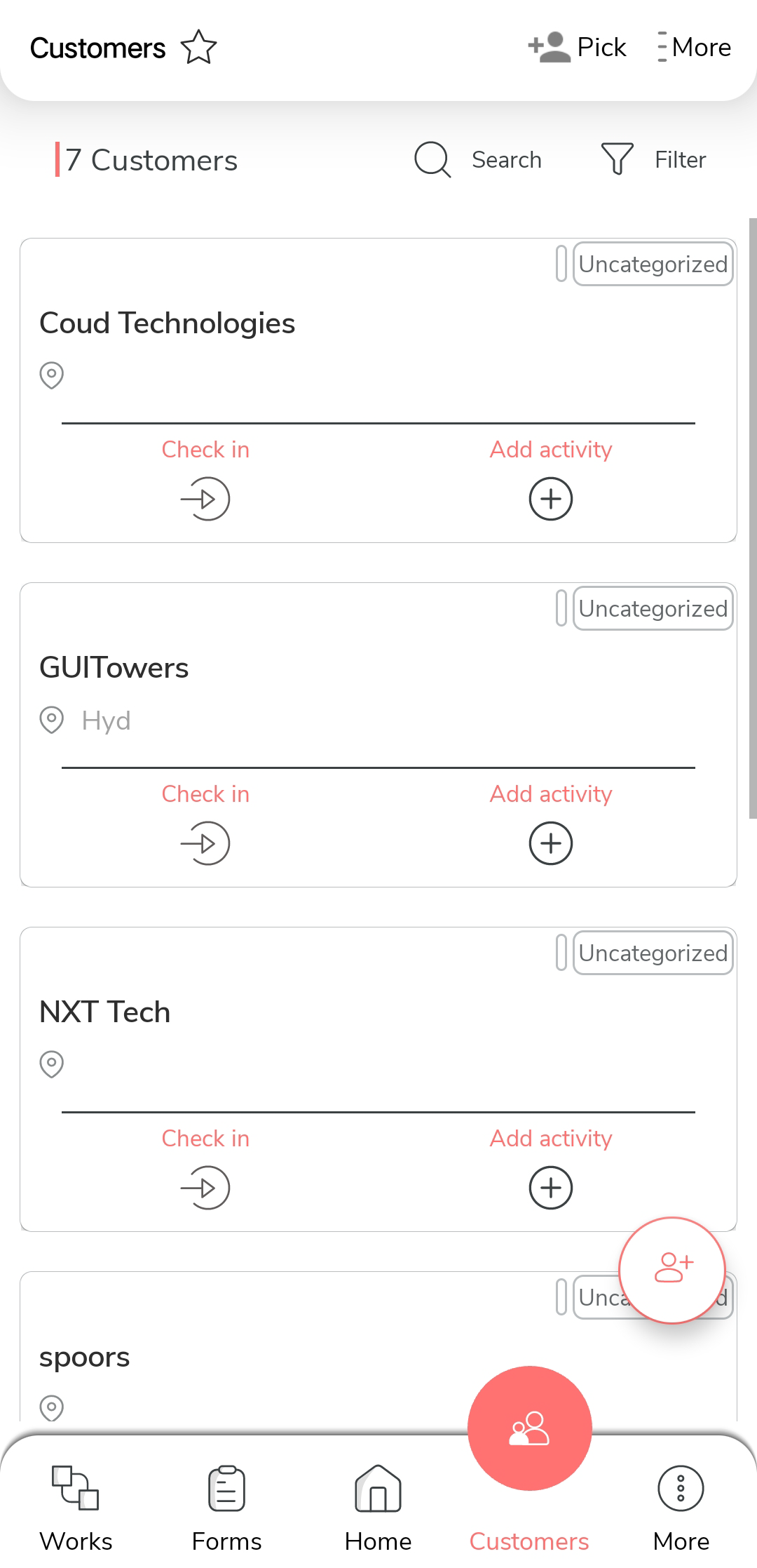 On the home screen or from the navigation drawer, tap Customers.
