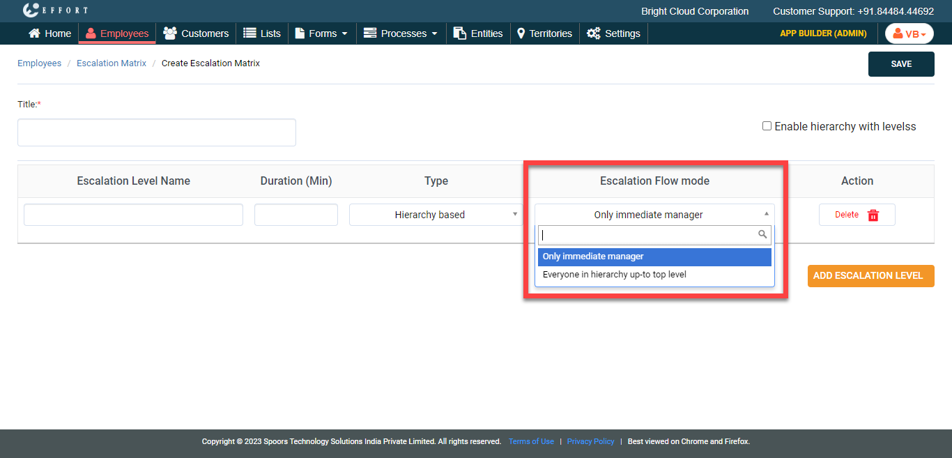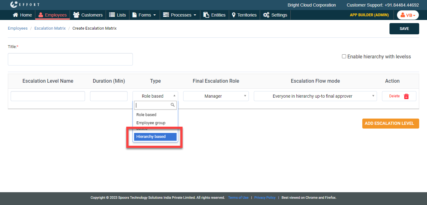 To create hierarchy based escalation matrix, follow the steps below.