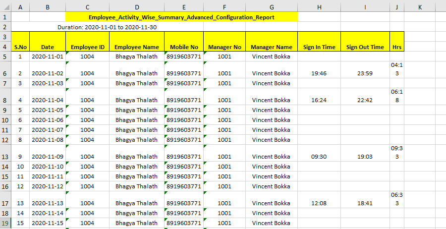 - Monthly: Allows you to select month and year. The report is generated in an excel sheet.