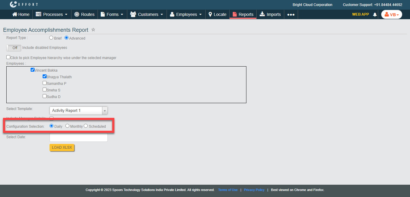 - Daily: Allows you to select date. The report is generated in an excel sheet.