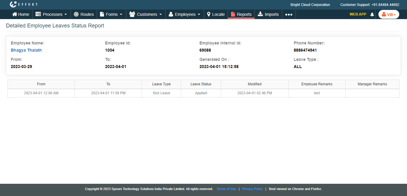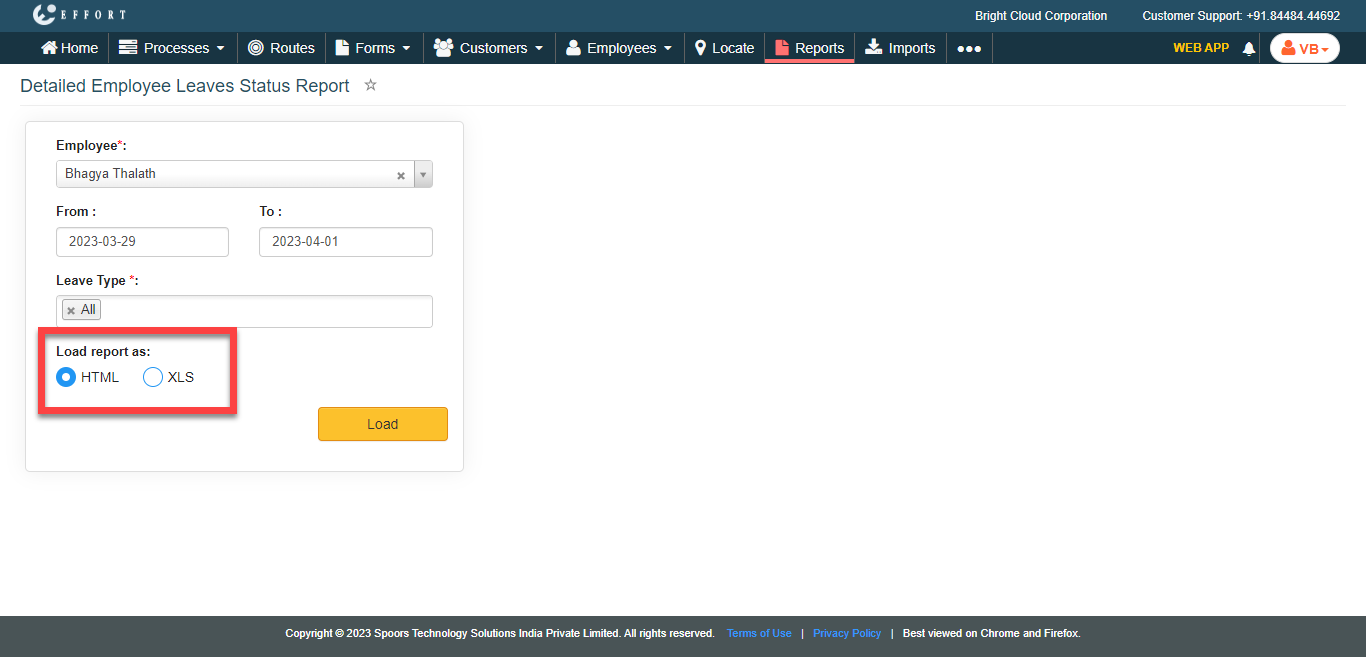 The Detailed Employee Leaves Status Report is displayed depends on the load report type.