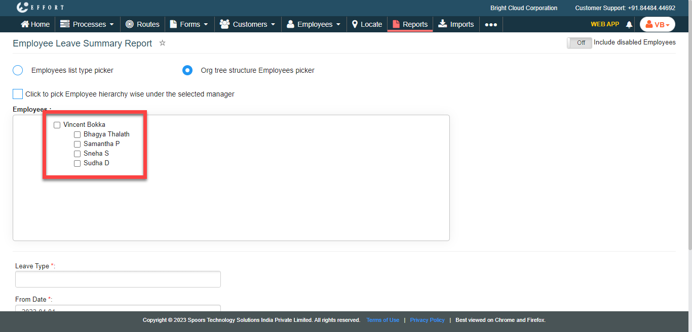 To generate an employee leave summary report, follow the steps below.