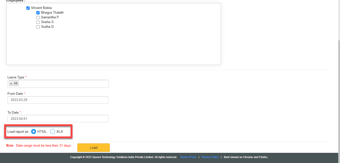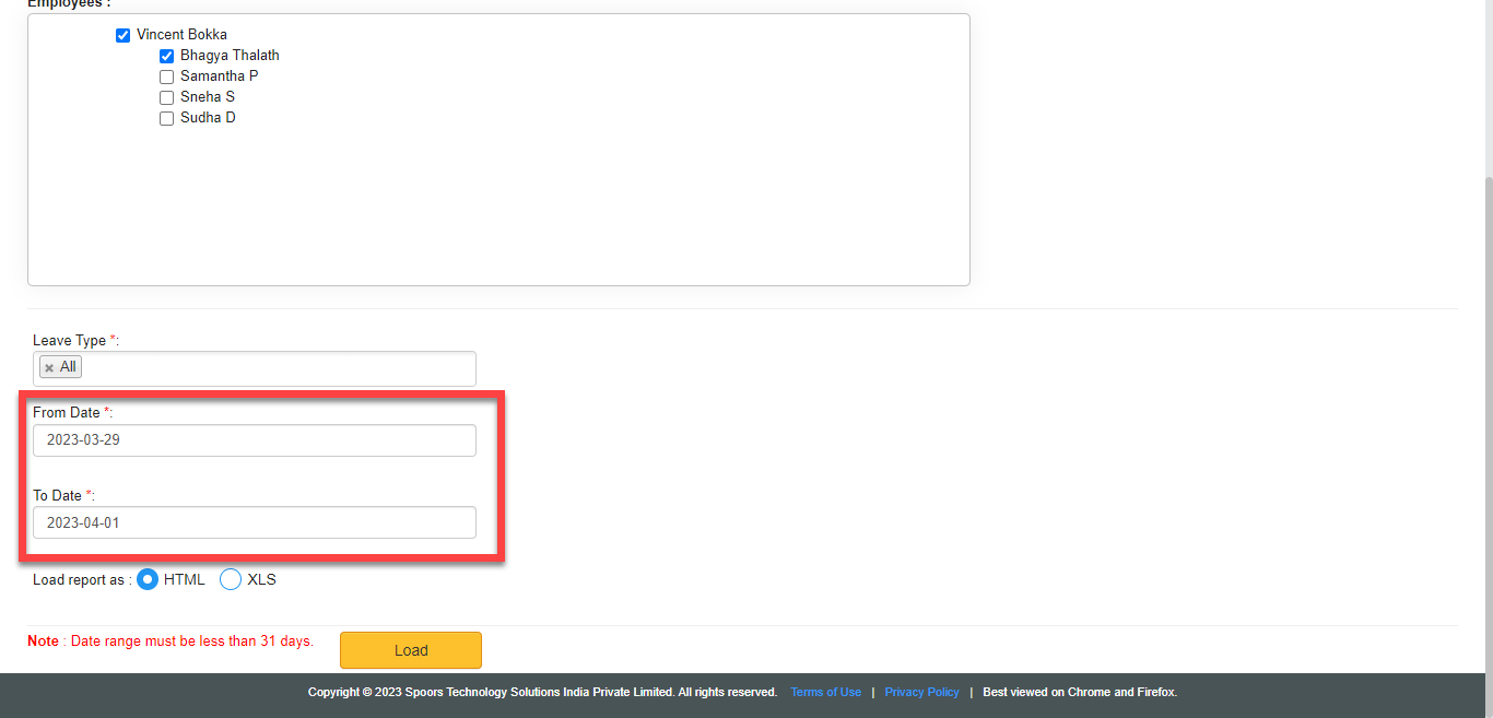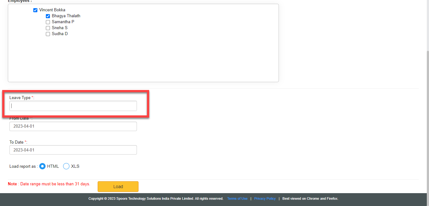 Select leave types under Leave Type dropdown.