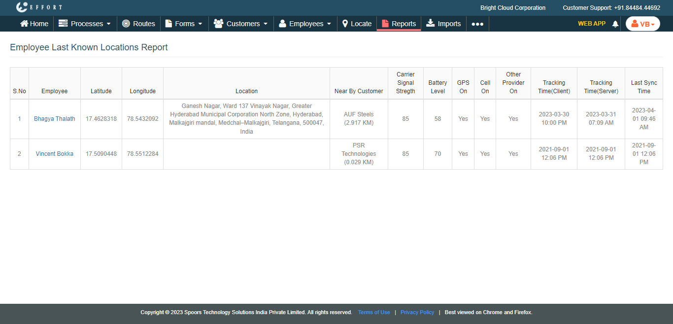 The Employee Last Known Locations Report is displayed depends on the report format.