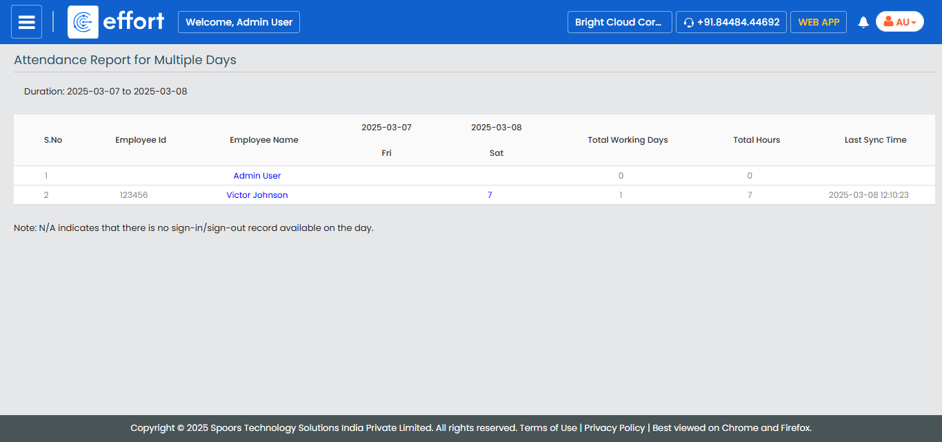 To generate a summary of attendance report for multiple days, follow the steps below.