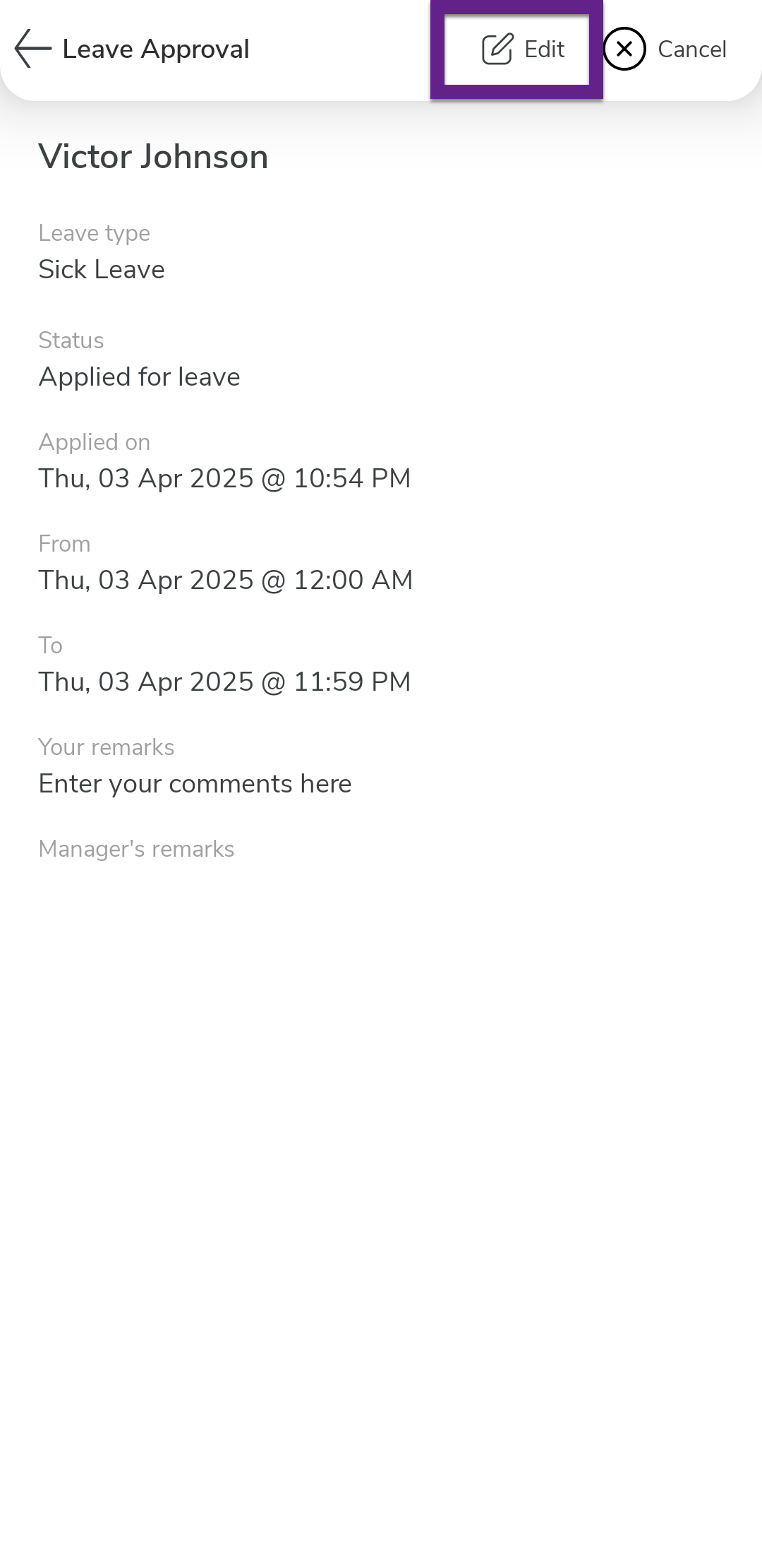 Tap the leave request you want to edit.