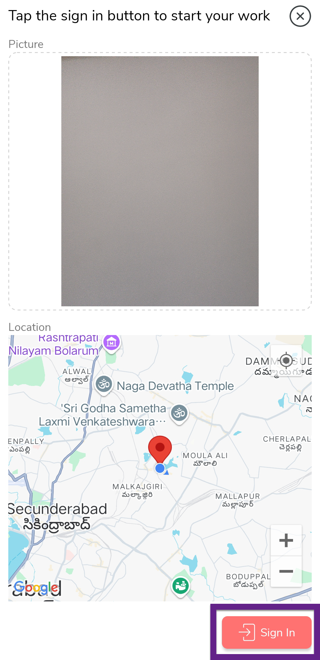 In the next page, capture your face properly and tap Sign