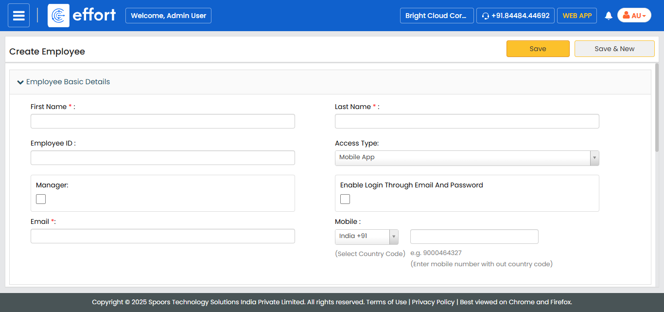The green and grey indicator in the Status column confirms the EFFORT mobile app status in the employee’s device