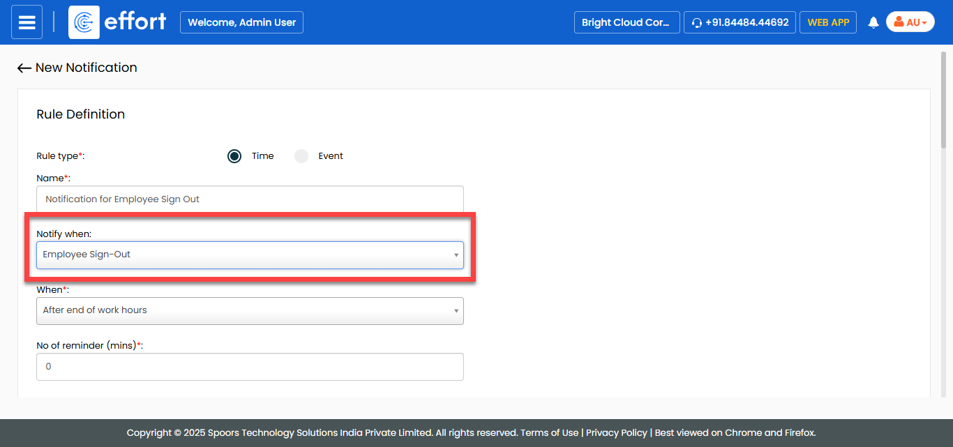 To trigger a notification after an employee performs sign-out, follow the steps below: