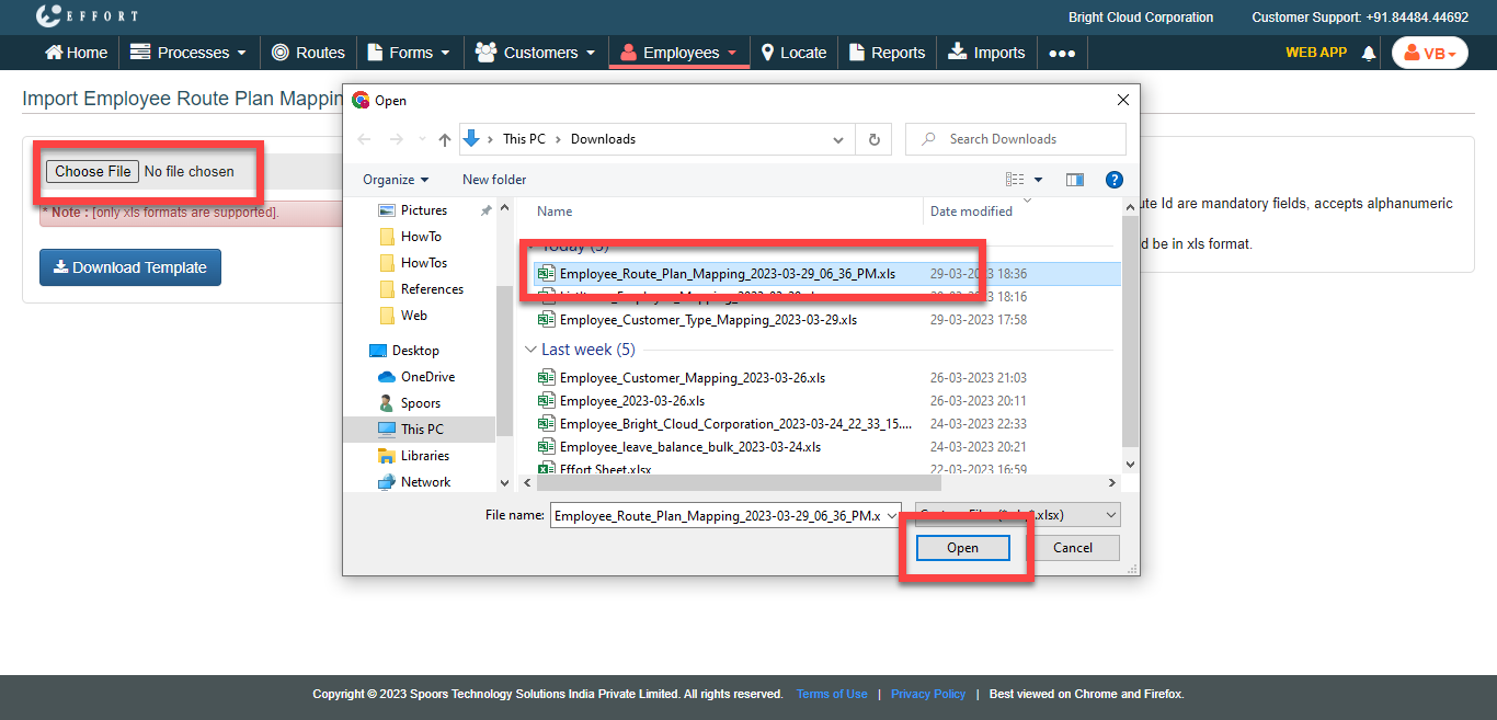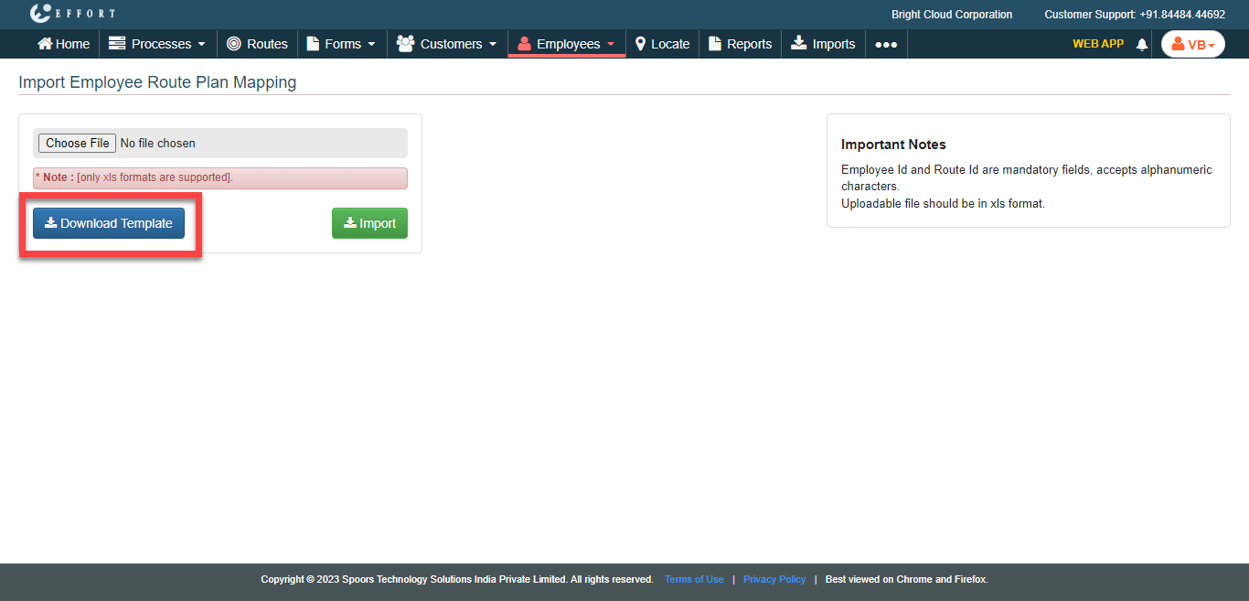 To import employee route plan mapping, follow the steps below.