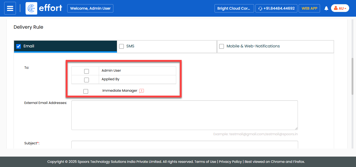 In the Delivery Rule section, do the following:
