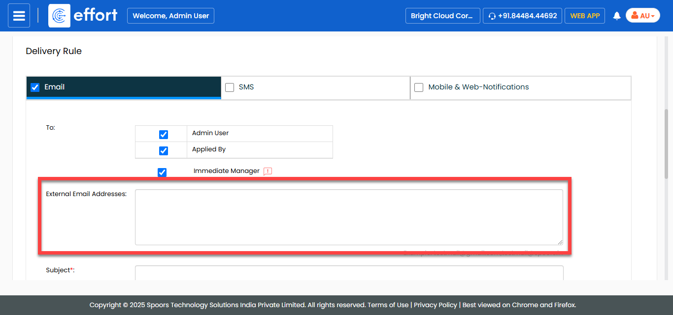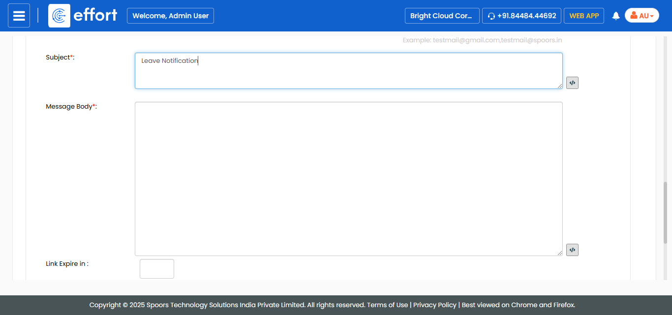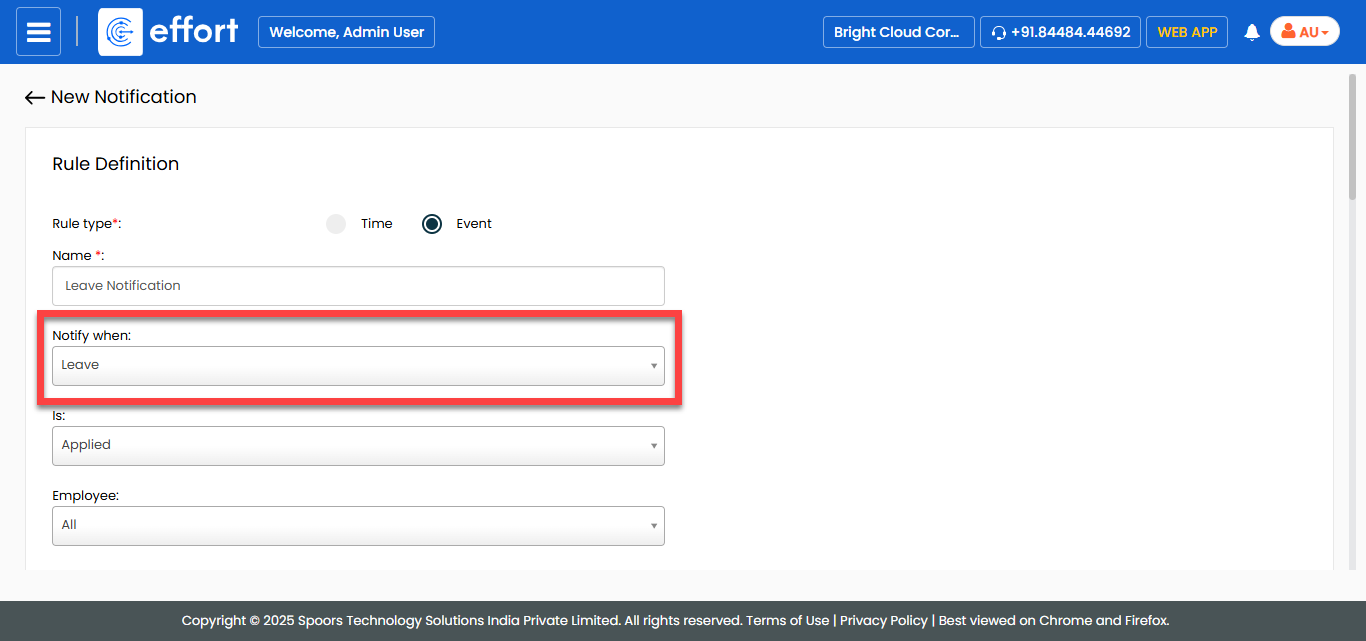 field to send notifications based on leave duration.