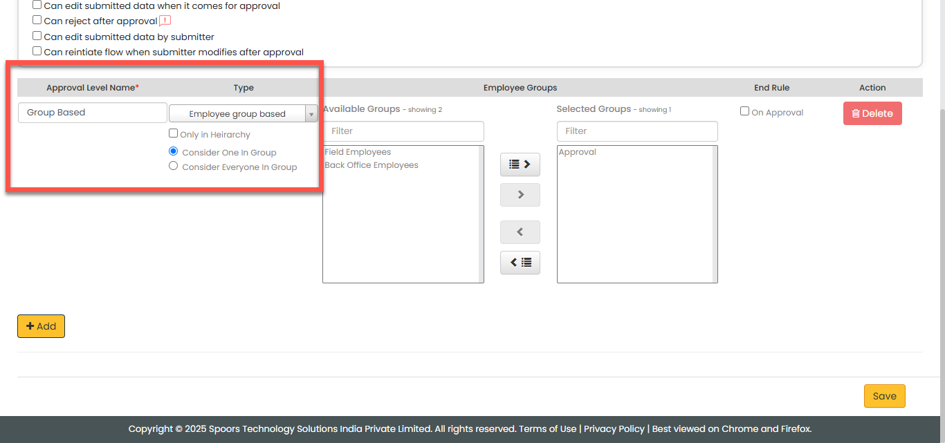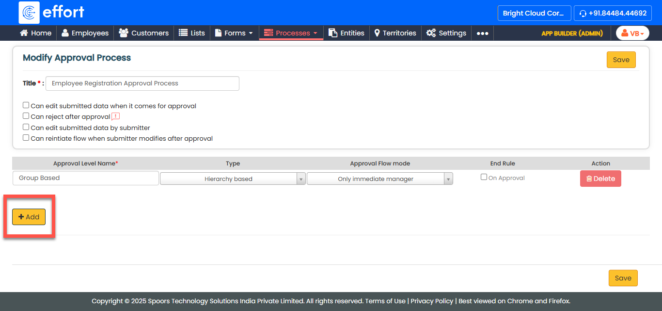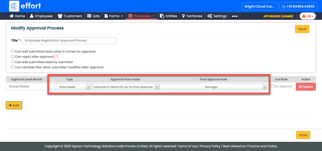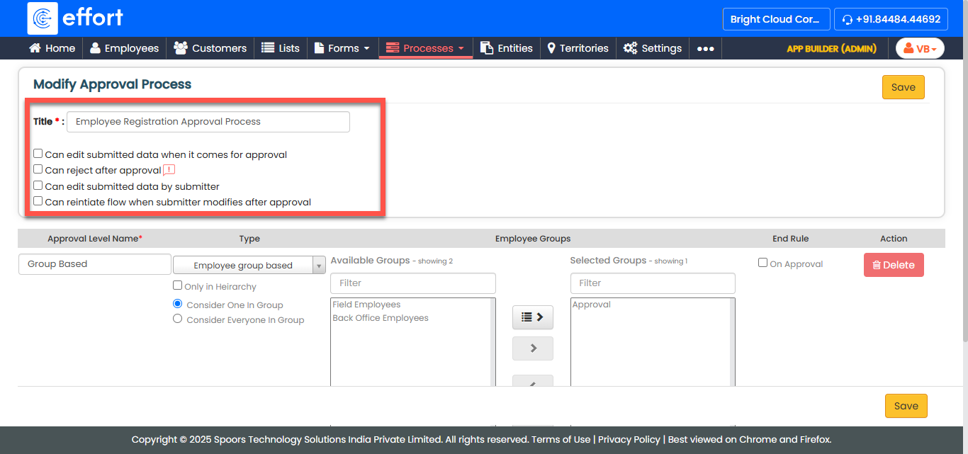 The Employee Registration Approval Process allows you to define and customize the approval workflow for employee registration submissions.