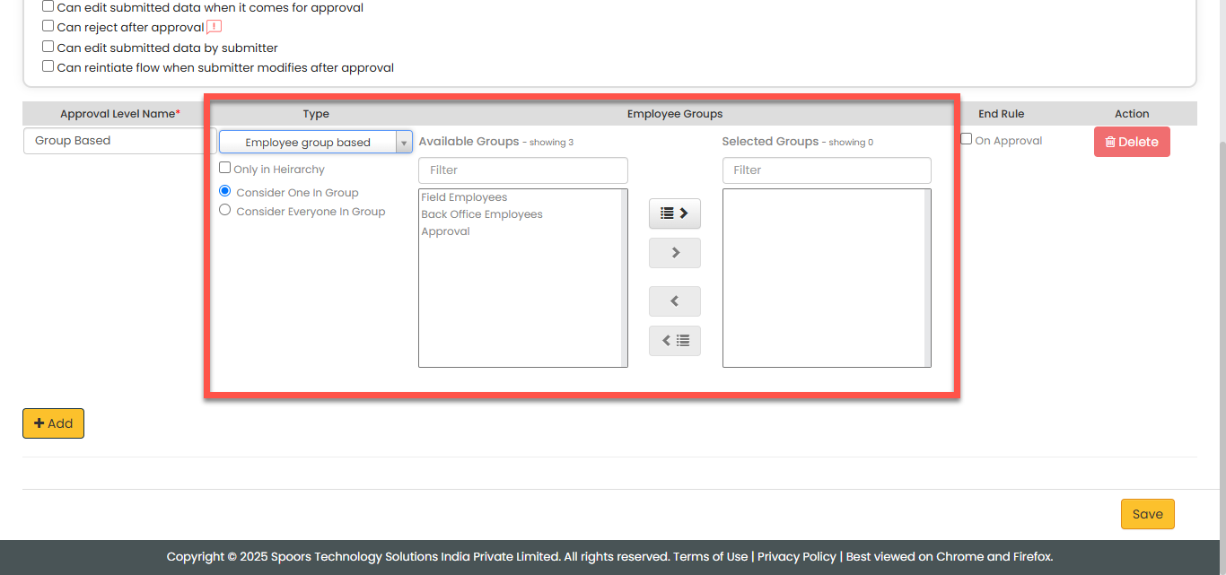 Select the checkbox if the approval should happen only within the employee hierarchy.