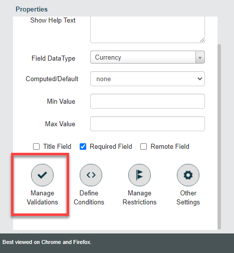 condition. Refer to the Manage Validations topic to know more about all the validations