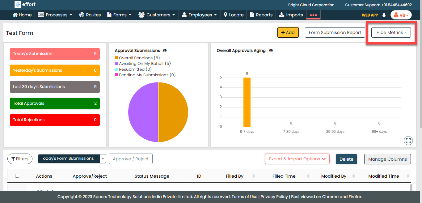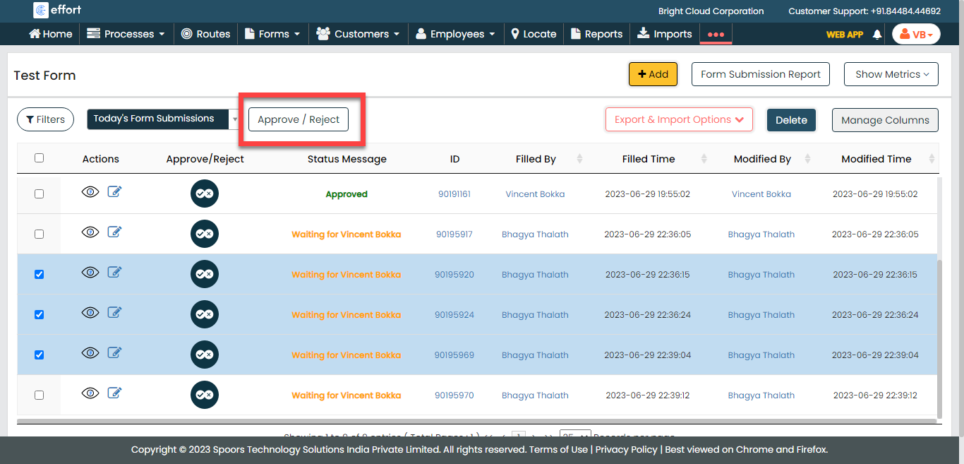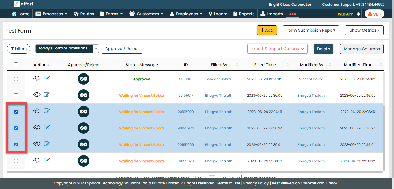To bulk approve or reject form submissions from the form list screen, follow the steps below: