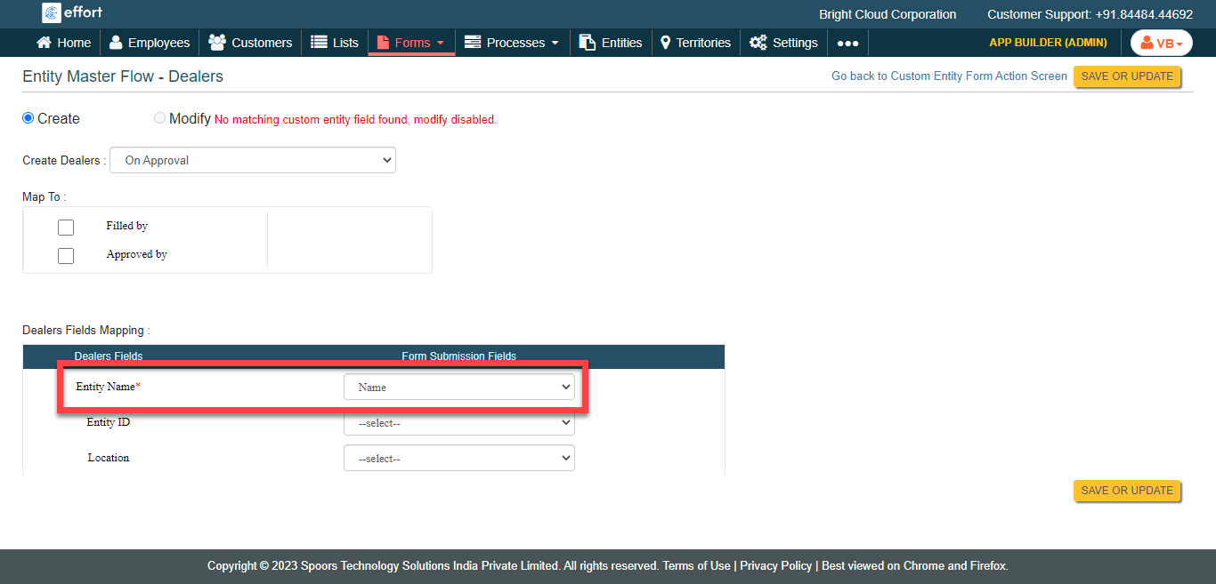 - Approved By: The created customer will be mapped to the employee who approves the form.