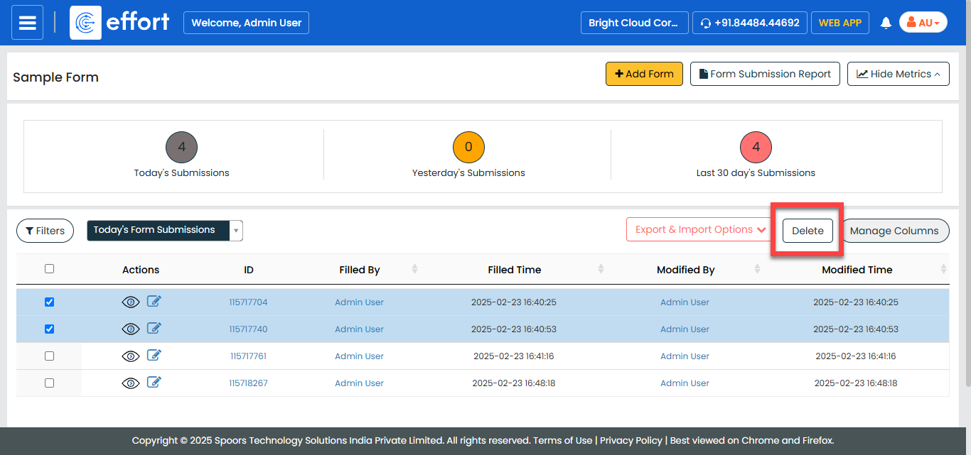 To delete a form submission in the Web App, follow the steps below.