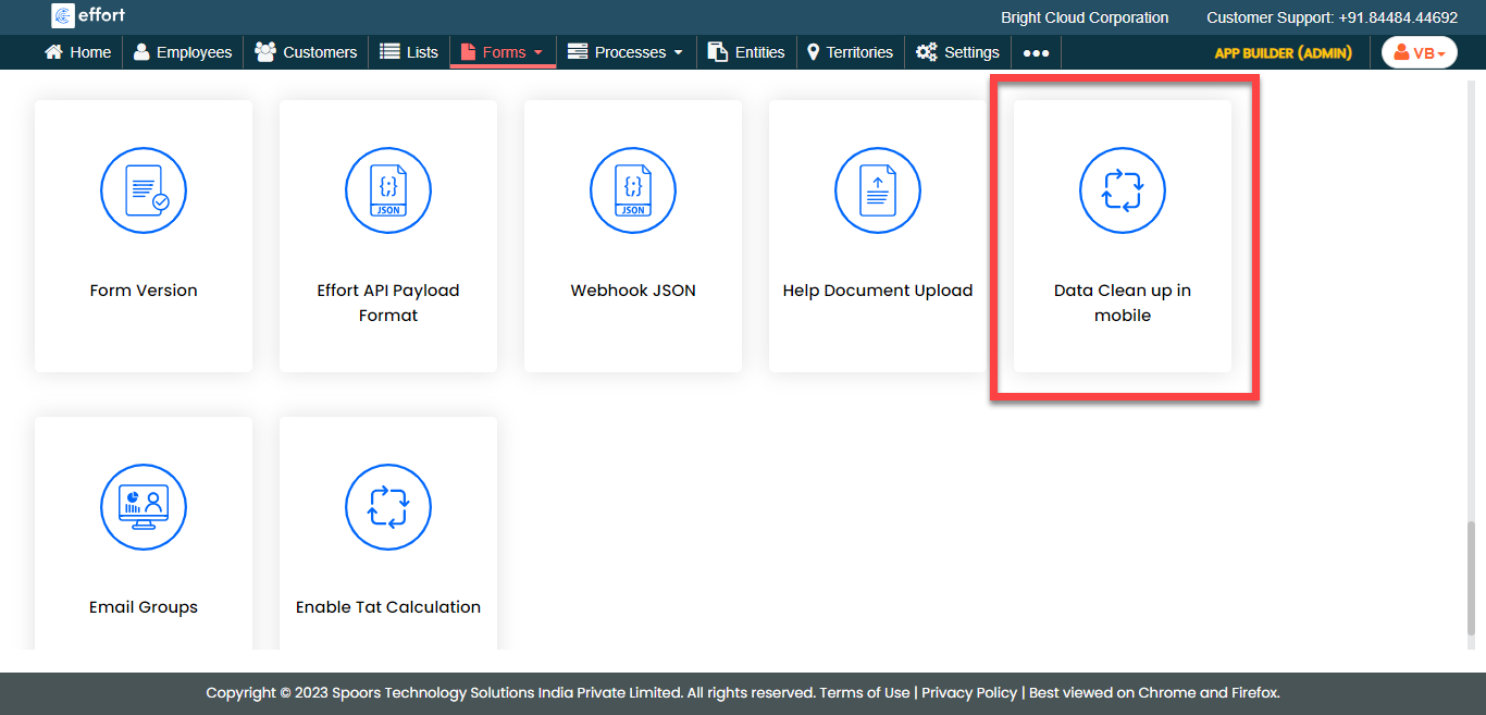 Click the Data Clean up in mobile card.
